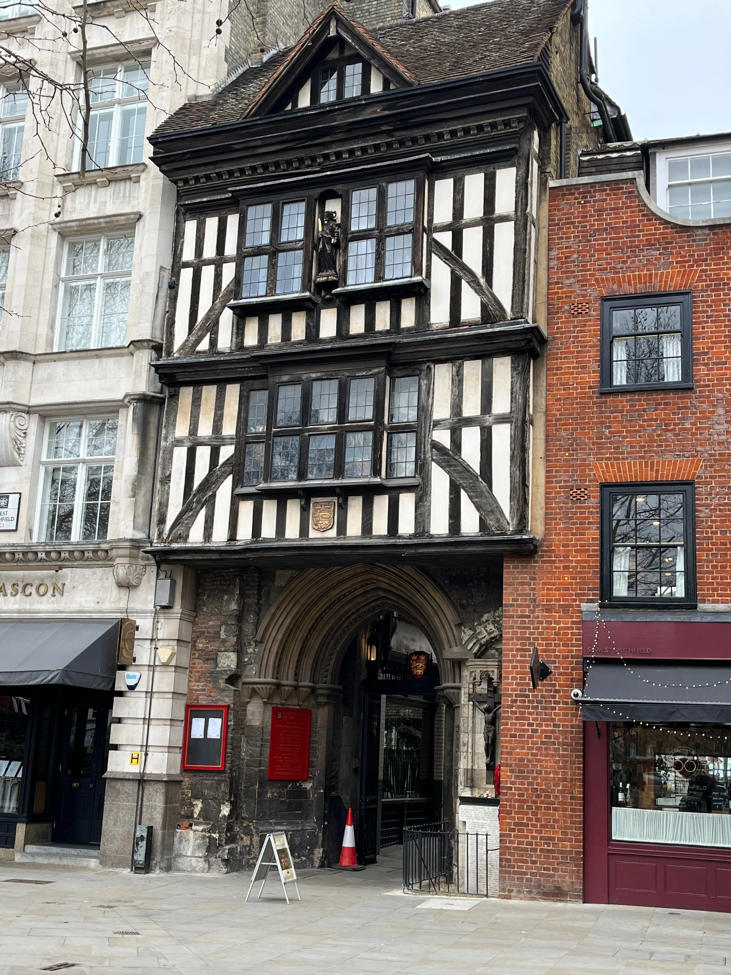 St. Bartholomew’s Church and Gatehouse - https://www.greatstbarts.com/. St. Barts is London’s oldest parish church, founded in 1123. The 13th century Tudor Gatehouse and the church still stand and are a quiet place to see medieval London architecture.