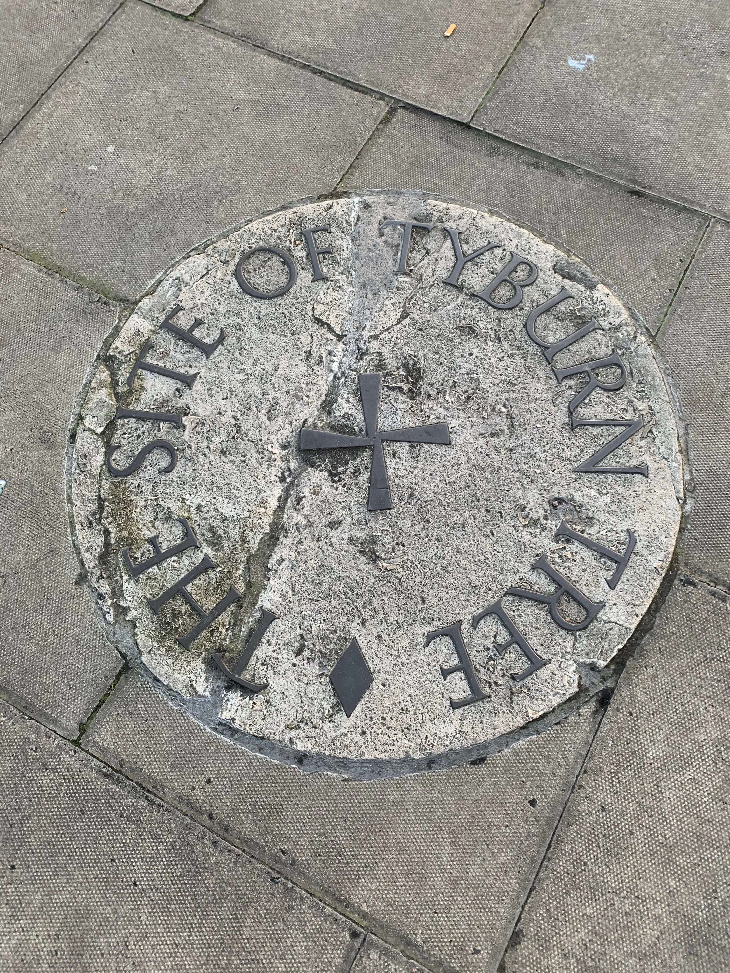 Tyburn Tree Marker - https://marble-arch.london/culture-blog/history-of-tyburn-tree/ A plaque in the middle of a busy intersection marks the spot where thousands of Londoners met their death at the gallows that were built on this spot.