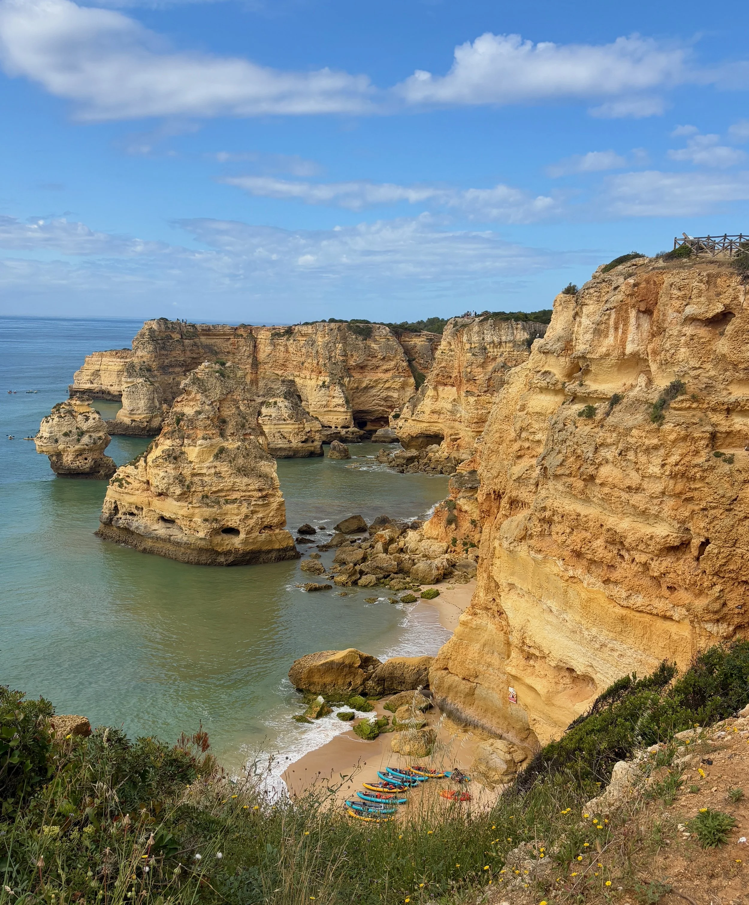 We knew we wanted to explore the western side of the Algarve, and I had read great things about the Benagil Cave and the Seven Hanging Valleys Trail. Our original plan to was hike the full trail (6km one way) and we booked a guided tour that would pick us up from Olhão. Unfotunately, the day before our trip, the host contacted us and said no one else had signed up so they were cancelling. I quickly scrambled to find another option. We were able to find a slightly different tour out of Faro on Get Your Guide, that wasn’t the full trail but took us to several different locations along the trail. We would absolutely recommend it!